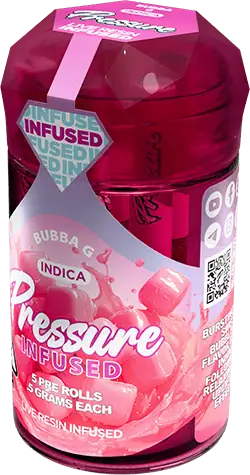 Rolling out that bold, spicy aroma, knocking out the stress within. Each container holds five premium pre-rolls, 0.5g each, live resin infused for fully mellow nights. Lean in now, and sink high.