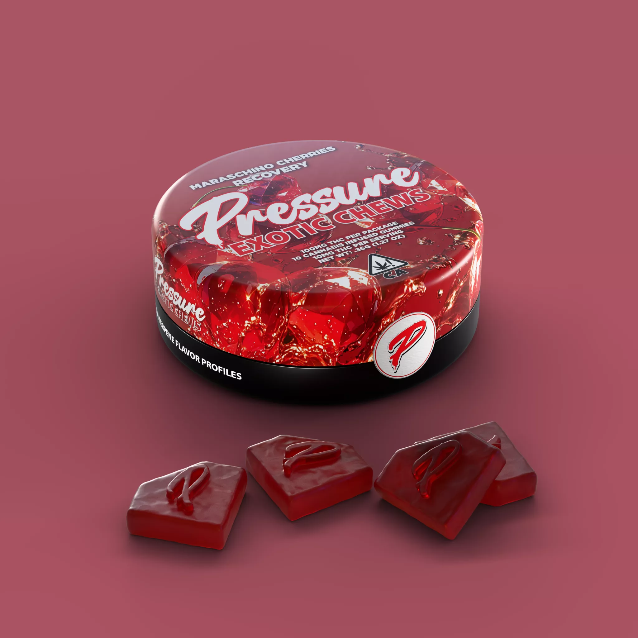 Marashino Cherries Recovery delivers a vibrant burst of sweet cherry flavor, crafted to support a soothing, rejuvenating experience. Enjoy these premium Exotic Pressure Chews to help you recharge and refocus, leaving you feeling refreshed.
